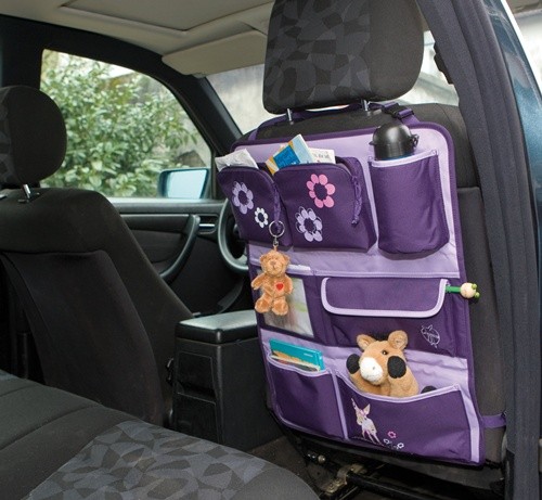 Deer viola to organizer do samochodu, który jest bardzo łatwy do zamocowania na oparciu fotela samochodowego. Posiada liczne przegródki i kieszenie, dwie zamykane na zamek błyskawiczny i jedną na rzep. Posiada również uchwyt na butelkę. Mocowanie w dwóch miejscach zapobiega przemieszczaniu się organizera.