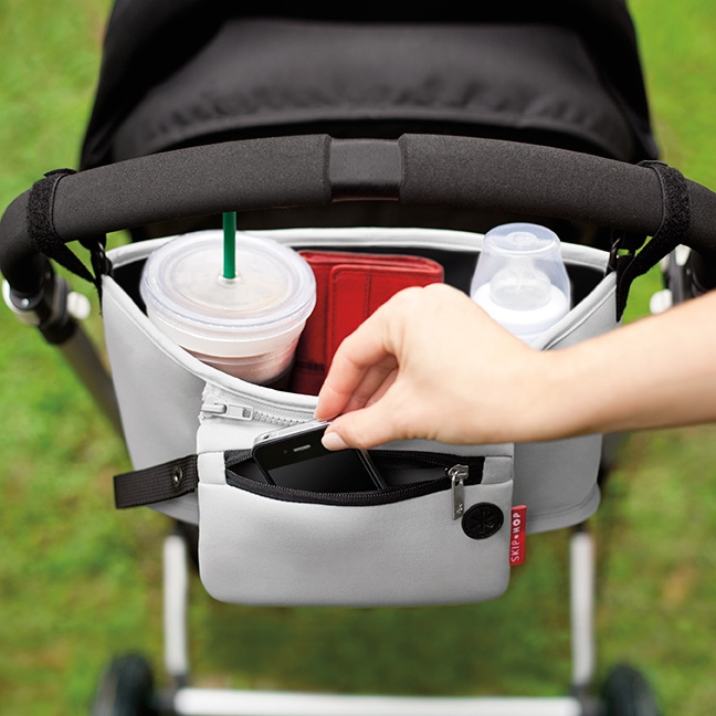 Organizer do wózka SKIP HOP to niezwykle praktyczny gadżet. Przestronna kieszeń główna pomieści wszystkie niezbędne rzeczy – zabawkę, smoczek, chusteczki, napój i przekąskę.