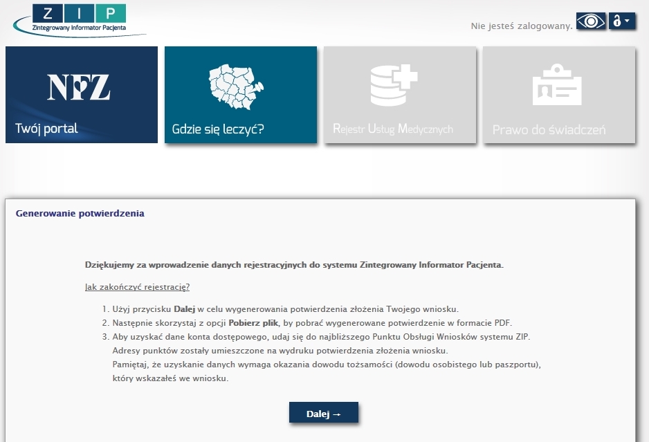 Wystarczy zalogować się za pośrednictwem strony ZIP