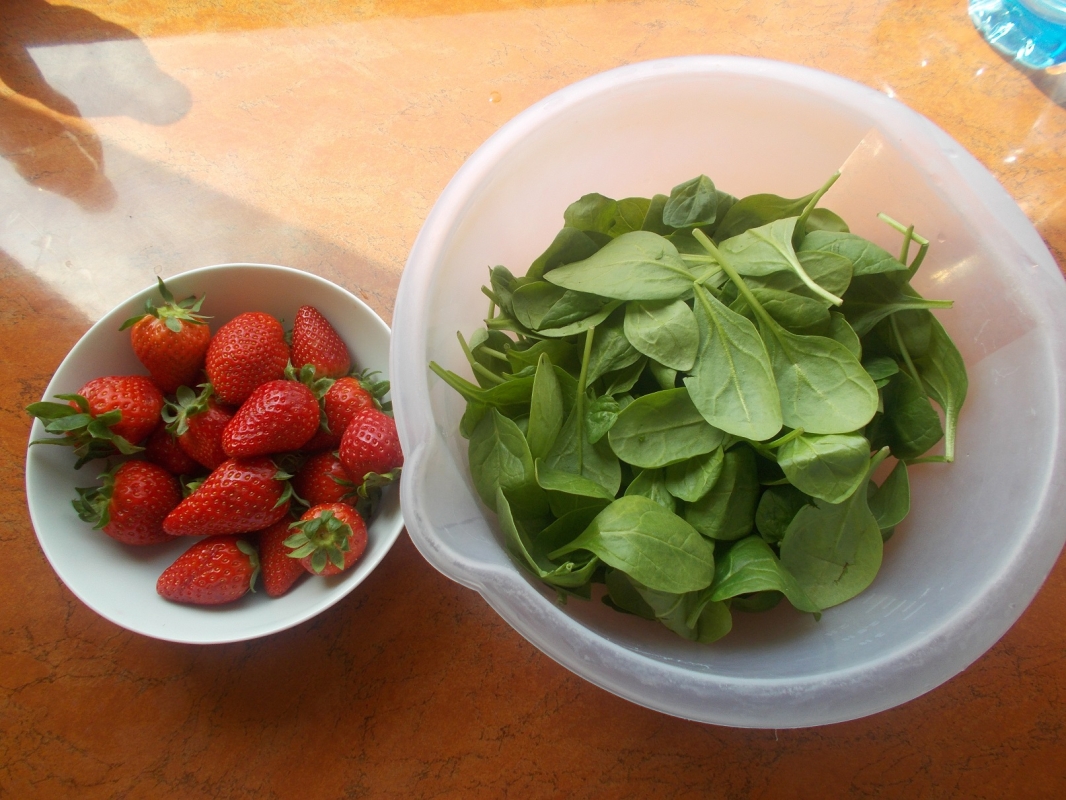 Przedstawiam Wam moją jedną z ulubionych sałatek: ze szpinakiem i truskawkami.